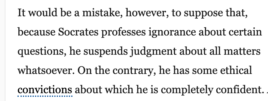 It would be a mistake to think that Socrates ever suspended judgment on any fucking thing ever at any point in his life.
