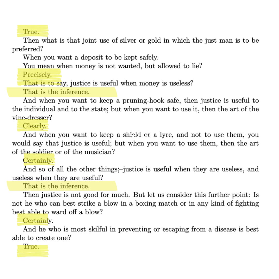 Background: I inherited a box of books from my late grandfather a couple years ago, and I’ve been working my way through it during the pandemic. One of those books was a copy of the collected dialogues of Plato. I knew nothing about Plato except what the show The Good Place taught me, so I went in like “Hmm, I might learn something.”